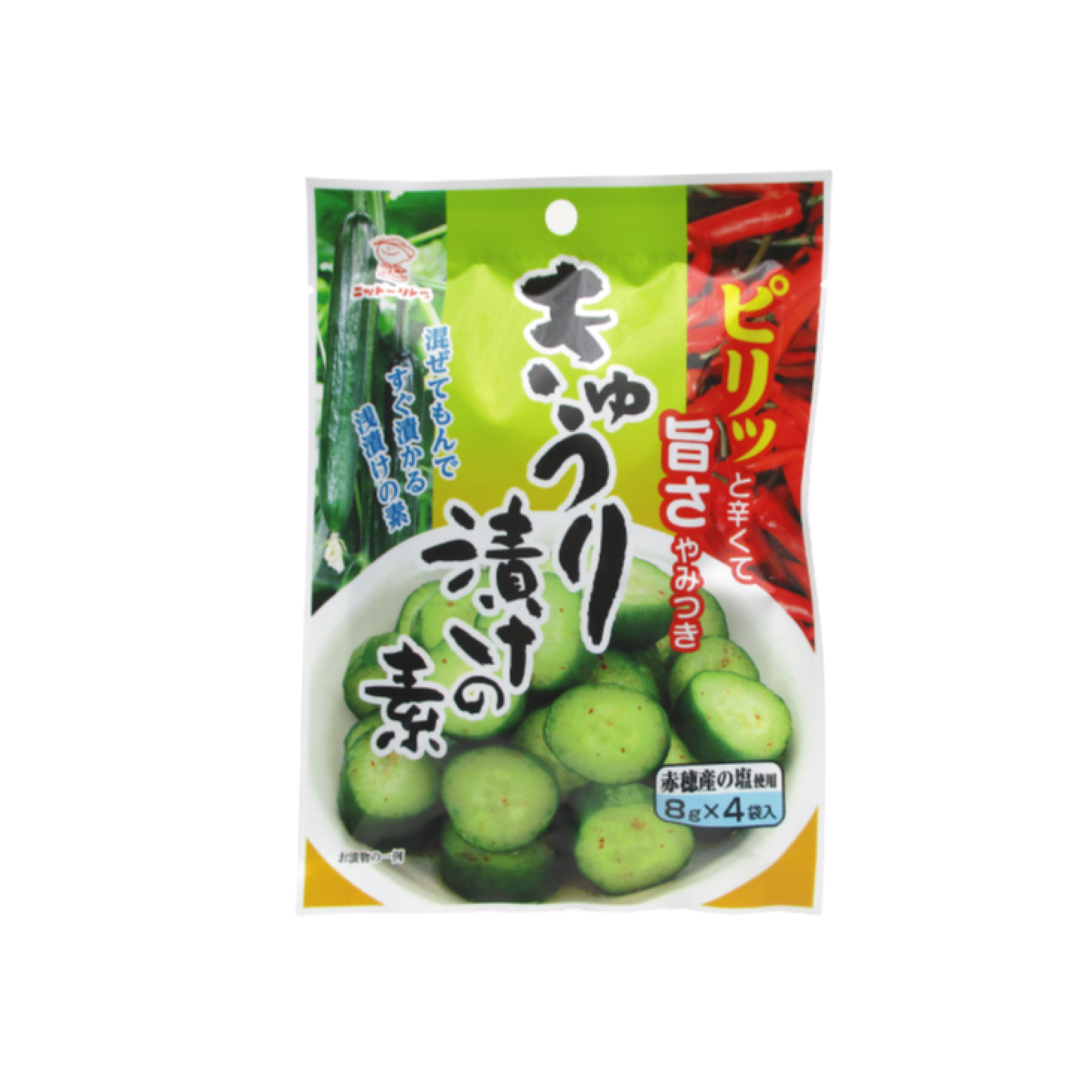 1. 小黃瓜洗淨切片,稍微瀝乾後裝入密封袋並放入8g漬物粉,將空氣擠出後關好密封袋放入冰箱,大約需醃漬1小時