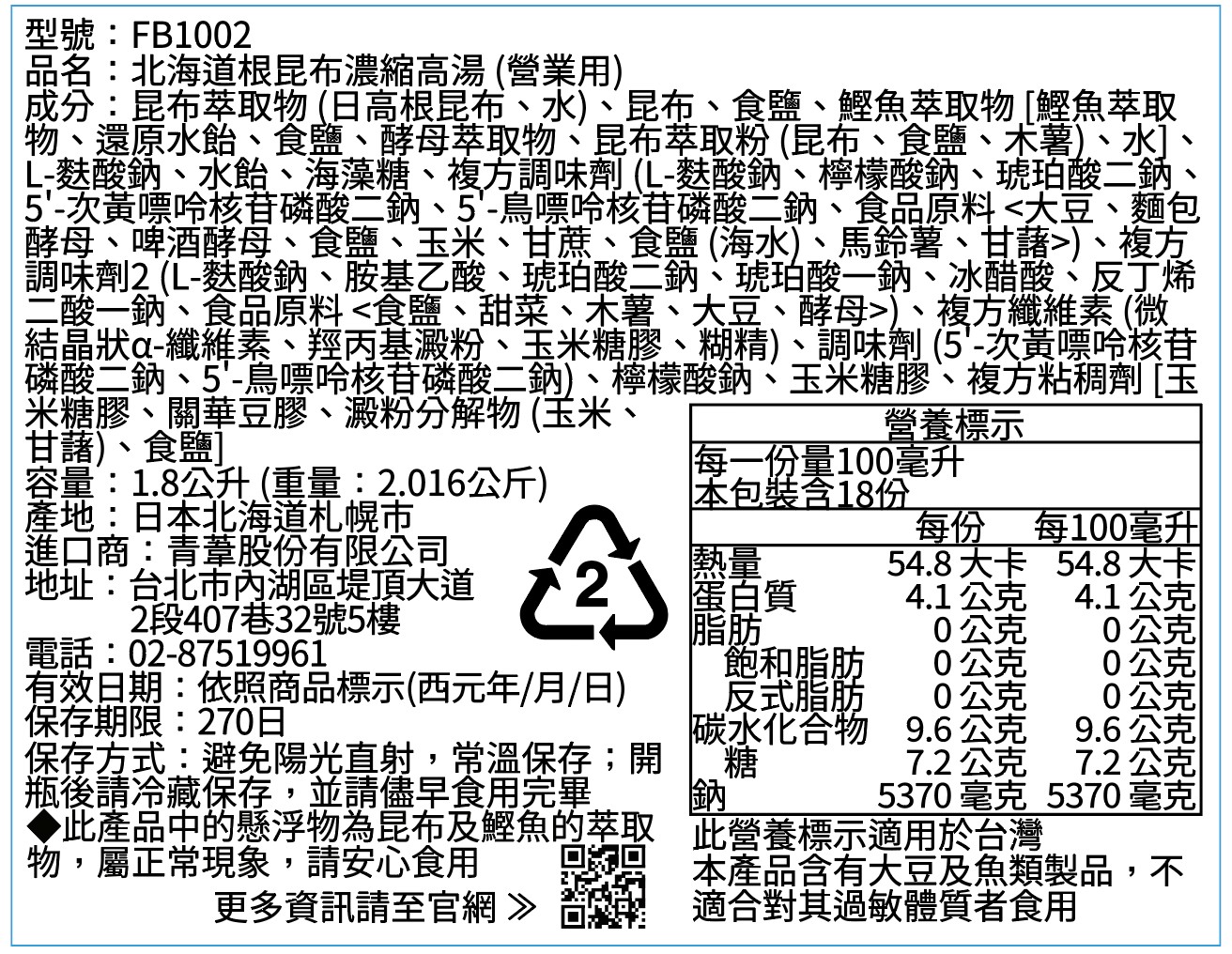 - 主要成份:根昆布 (北海道日高產)、鰹魚、鹽