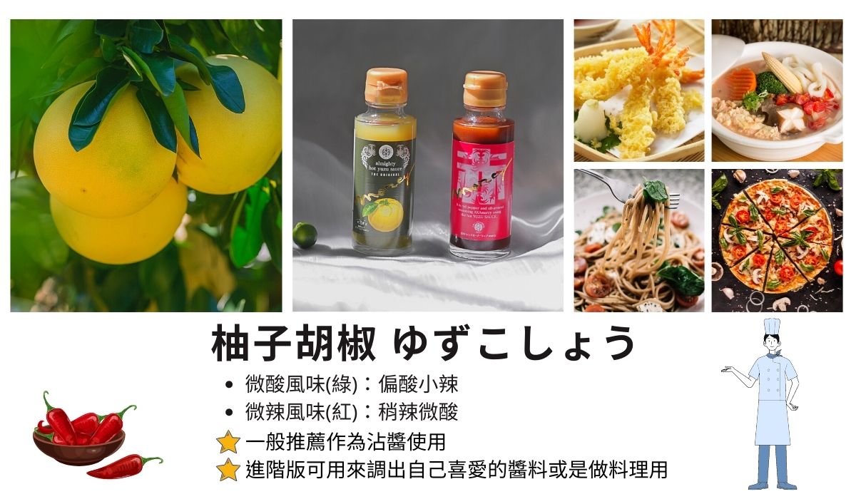 - 成分:釀造醋、柚子辣椒、辣椒、食鹽